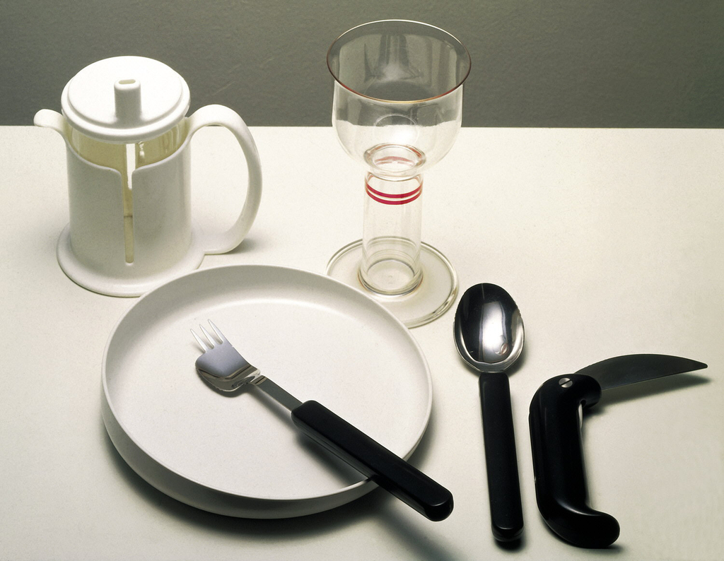 This is a Dinner fork. It was designed by Ergonomi Design Gruppen and design team member: Maria Benktzon and Sven-Eric Juhlin and manufactured by RFSU Rehab. It is dated 1981 and we acquired it in 1982. Its medium is stainless steel, plastic (melamine, polycarbonate). It is a part of the Product Design and Decorative Arts department.