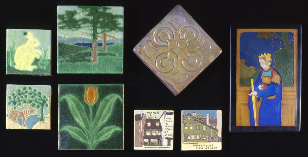 This is a tile. It was designed by Mary Chase Perry and made by Pewabic Pottery. It is dated after 1909 and we acquired it in 1983. Its medium is composite stoneware, earthenware. It is a part of the Product Design and Decorative Arts department.
