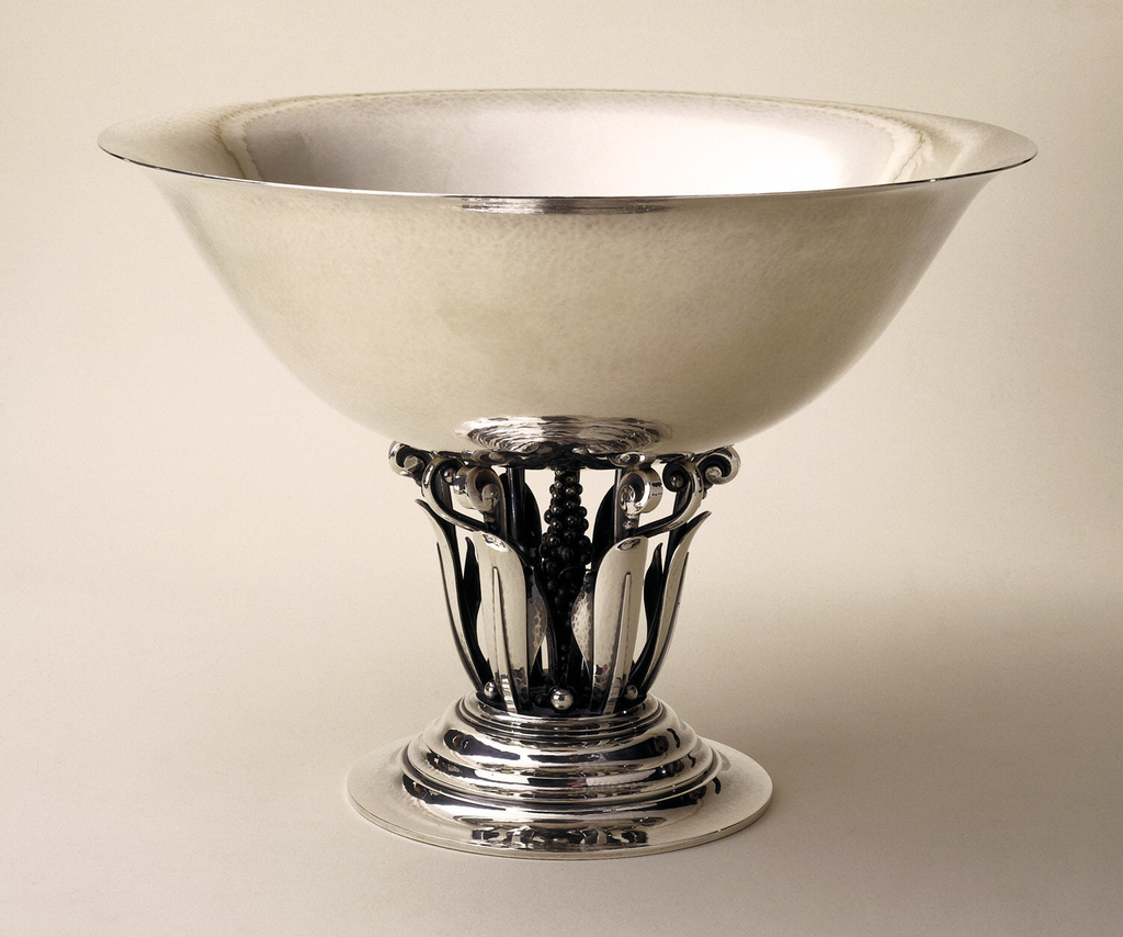 From 1923 on, Georg Jensen had a New York shop promoting his simple, elegant forms. Featured in American museum and department store exhibitions during the 1920s, this model of bowl continued to be made for decades. Danish styling was so popular that American firms referenced Jensen’s expressive decoration in an effort to emulate its success.