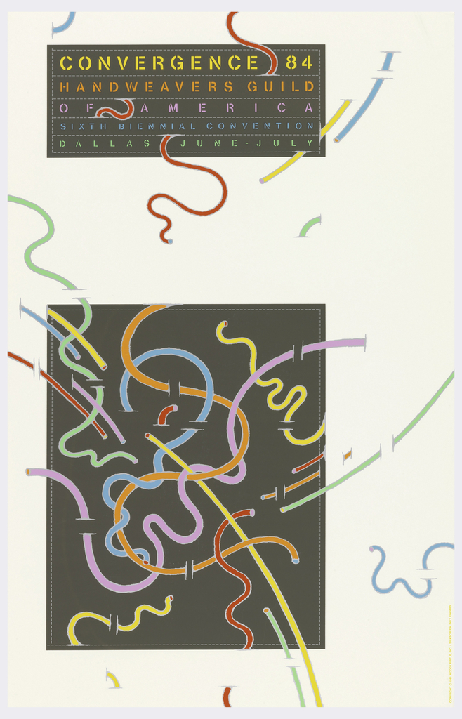 Poster, Convergence 84, Handweavers Guild of America; Designed by Woody Pirtle (b. 1945); Printed by Inky Fingers; USA; silkscreen on paper; 85.4 x 54.4 cm (33 5/8 x 21 7/16 in.); 1984-24-1