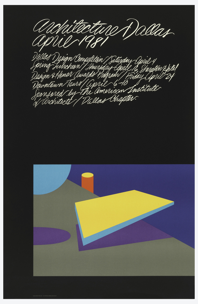 Poster, Architecture Dallas, April '98; Designed by Woody Pirtle (b. 1945); Printed by Newman & Melton; USA; lithograph on paper; 99.5 x 64.3 cm (39 3/16 x 25 5/16 in.); 1984-25-1