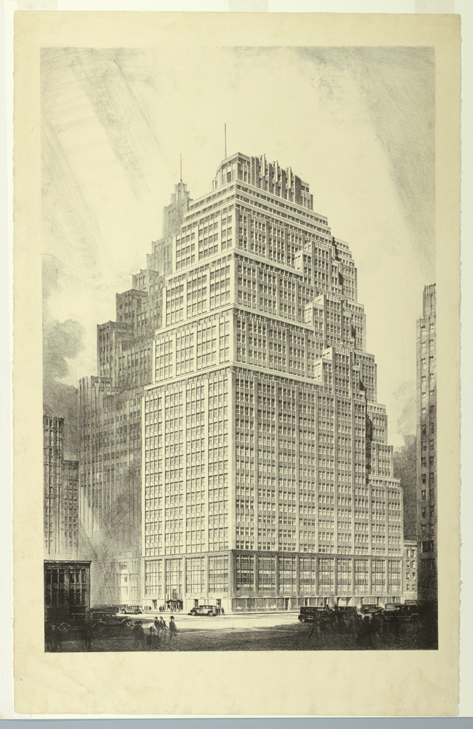 Print, Building, New York, NY; Designed by J. Floyd Yewell (American, 1885–1963); USA; lithograph on cream paper; 101.6 × 63.5 cm (40 × 25 in.); Gift of Edith H. Yewell; 1984-76-2