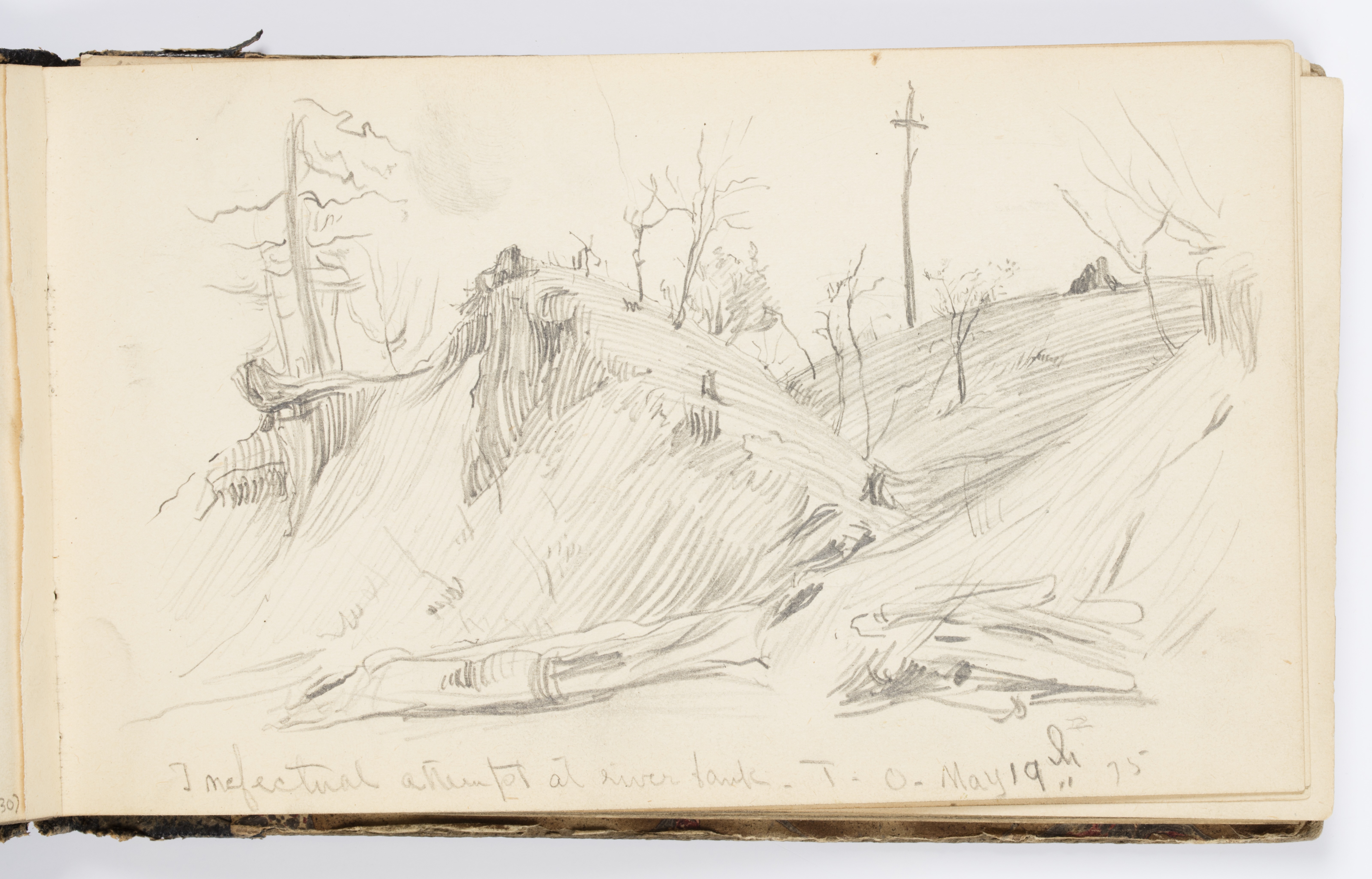 Inscribed in graphite, below: "Inefectual a[?] at river bank. T.O. May 19th, 75"