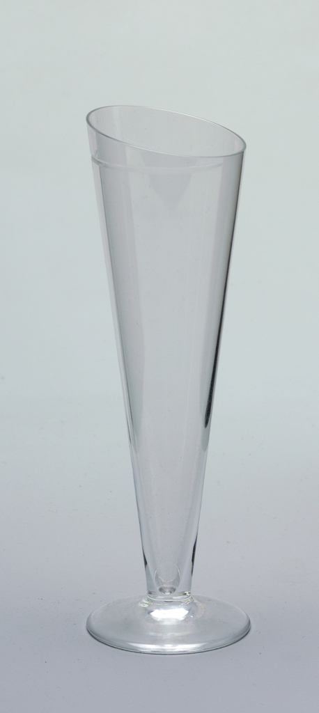 This is a flute. We acquired it in 1985. Its medium is glass. It is a part of the Product Design and Decorative Arts department.