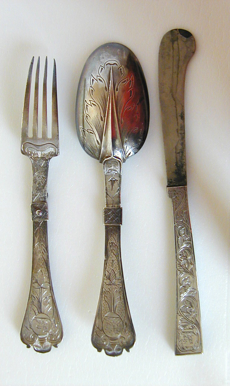 <ref name=CH>{{cite web |url=https://www-5.collection.cooperhewitt.org/objects/18804007/ |title=Folding Spoon with Engraved Floral Decoration and Lion Cartouche Folding Spoon |author=Cooper Hewitt, Smithsonian Design Museum |accessdate=20 December 2025 |publisher=Smithsonian Institution}}</ref>