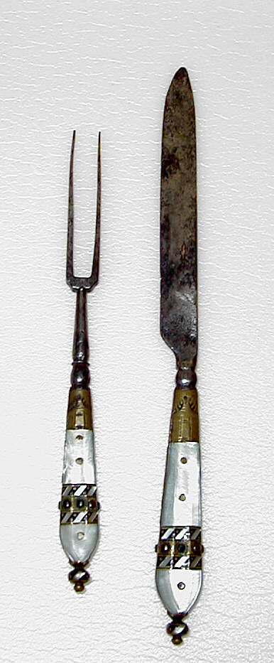 " Such sweetmeats, also known as "suckets", were featured in a special "banquette" course that follower themain meal. A small two pronged fork proved highly useful for eating these sticky treats. Etiquette manuals from the Italian Renaissance note the importance of the fork to seemly manners: using a fork signaled courteous behavior, itself a relfect of inner virtue (fig. 4). Along with other Italian fashions, the use of a small fork used for sweetmeats and fruits in fifteenth-century Italy eventually spread throughout Europe (fig. 3)"