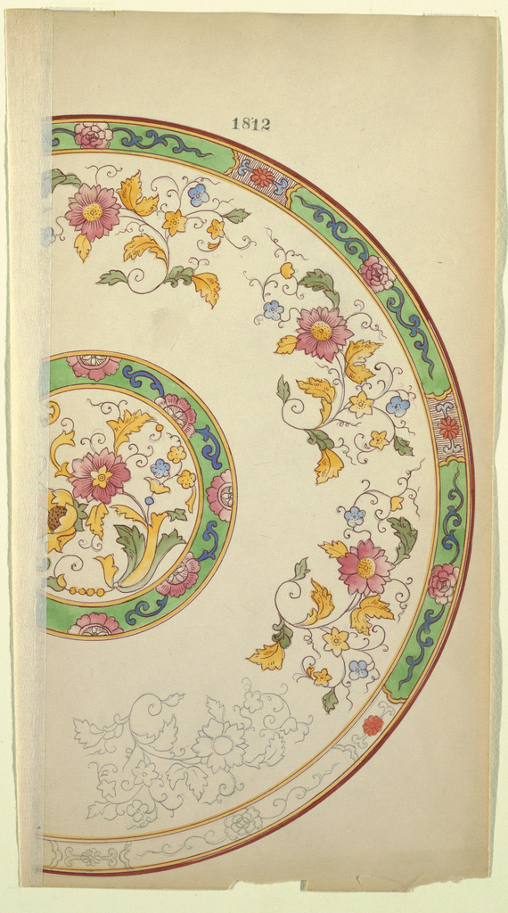 Drawing, Design for a Plate; Made for Noritake; Japan; brush and watercolor, pen and brown ink, graphite on cream paper; 29 x 16.3 cm (11 7/16 x 6 7/16 in.) Mat: 35.7 x 45.8 cm (14 1/16 x 18 1/16 in.); 1985-14-11