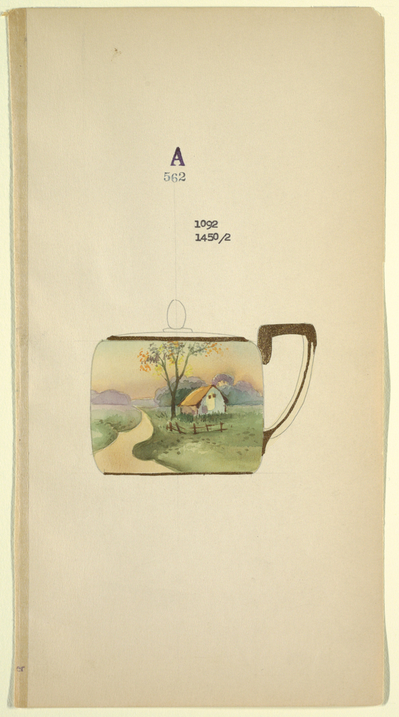Drawing, Design for a Teacup; Made for Noritake; Japan; brush and gold gouache, watercolor, graphite on cream paper; 29.1 x 15.3 cm (11 7/16 x 6 in.) Mat: 35.7 x 45.8 cm (14 1/16 x 18 1/16 in.); 1985-14-18