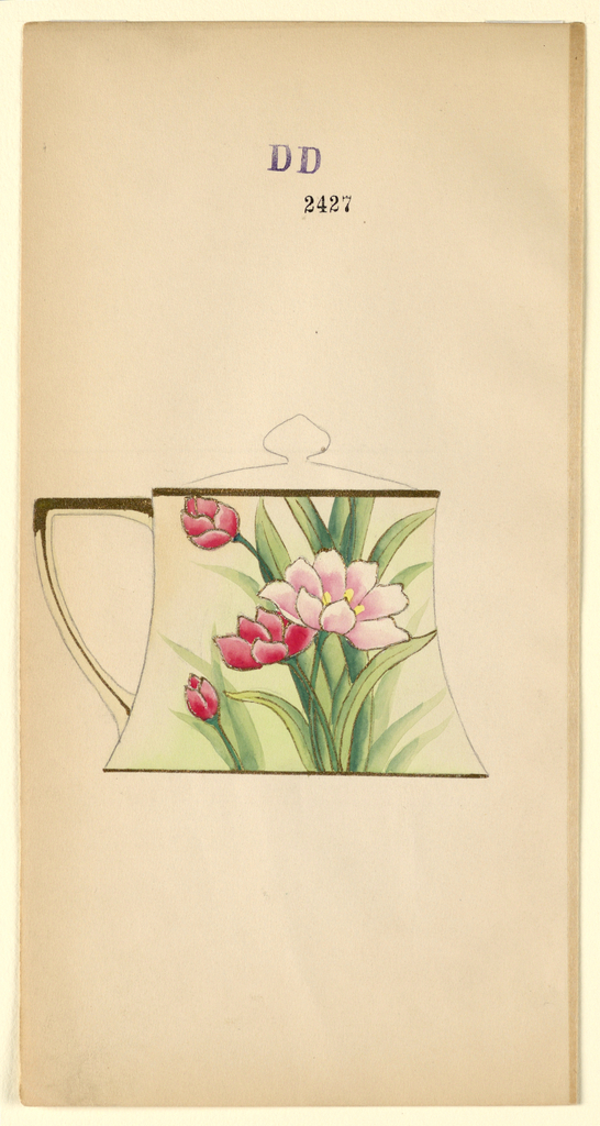 Drawing, Design for a Sugar Bowl; Made for Noritake; Japan; brush and watercolor, gold gouache, graphite on cream paper; 29.3 x 15.2 cm (11 9/16 x 6 in.) Mat: 35.7 x 45.7 cm (14 1/16 x 18 in.); 1985-14-19