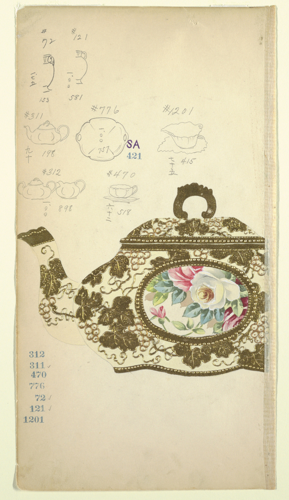 Drawing, Design for a Teapot; Made for Noritake; Japan; brush and gold gouache, watercolor, graphite on cream paper; 28.8 x 15.5 cm (11 5/16 x 6 1/8 in.) Mat: 35.7 x 45.8 cm (14 1/16 x 18 1/16 in.); 1985-14-2