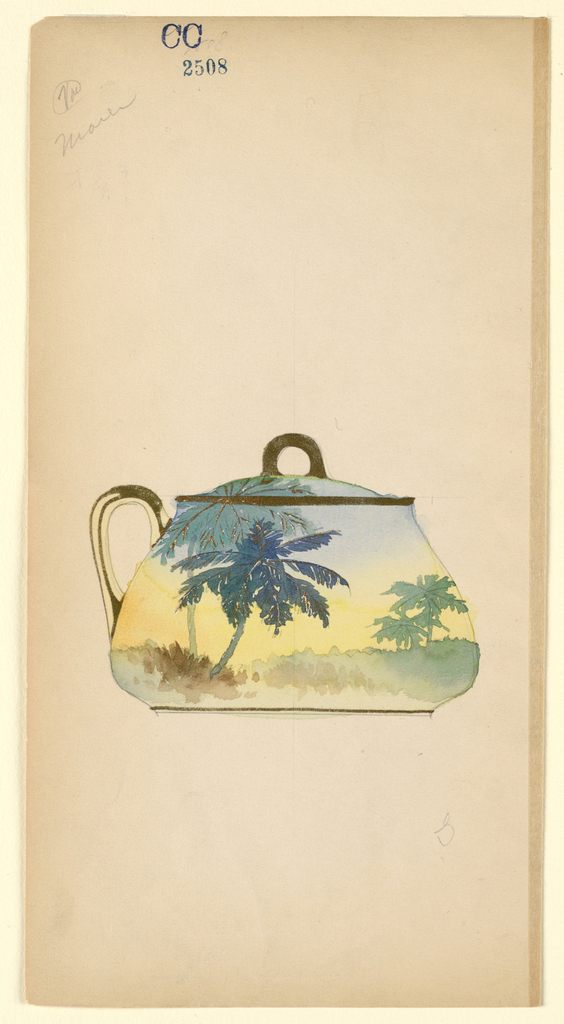 Drawing, Design for a Sugar Bowl; Made for Noritake; Japan; brush and watercolor, gold gouache, graphite on cream paper; 29.2 x 15.3 cm (11 1/2 x 6 in.) Mat: 35.7 x 45.7 cm (14 1/16 x 18 in.); 1985-14-21