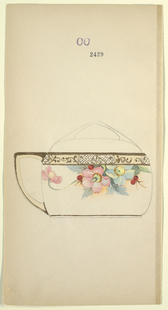 This is a Drawing. It was made for Noritake. It is dated 1880–1910 and we acquired it in 1985. Its medium is brush and watercolor, gold gouache, graphite on cream paper. It is a part of the Drawings, Prints, and Graphic Design department.