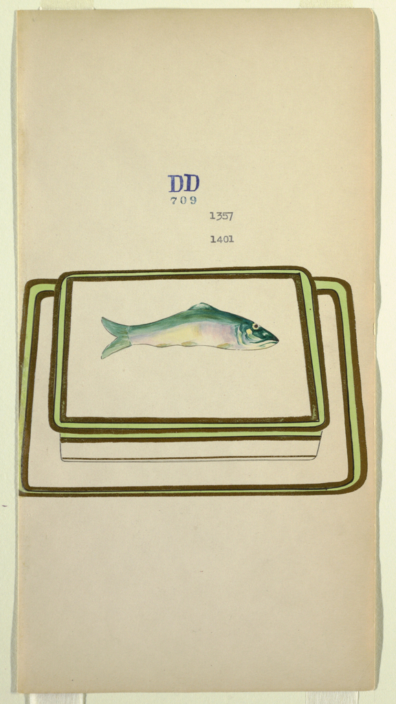 Drawing, Design for a Box; Made for Noritake; Japan; brush and watercolor, gold, black gouache, graphite on cream paper; 29.1 x 15.2 cm (11 7/16 x 6 in.) Mat: 35.7 x 45.8 cm (14 1/16 x 18 1/16 in.); 1985-14-29