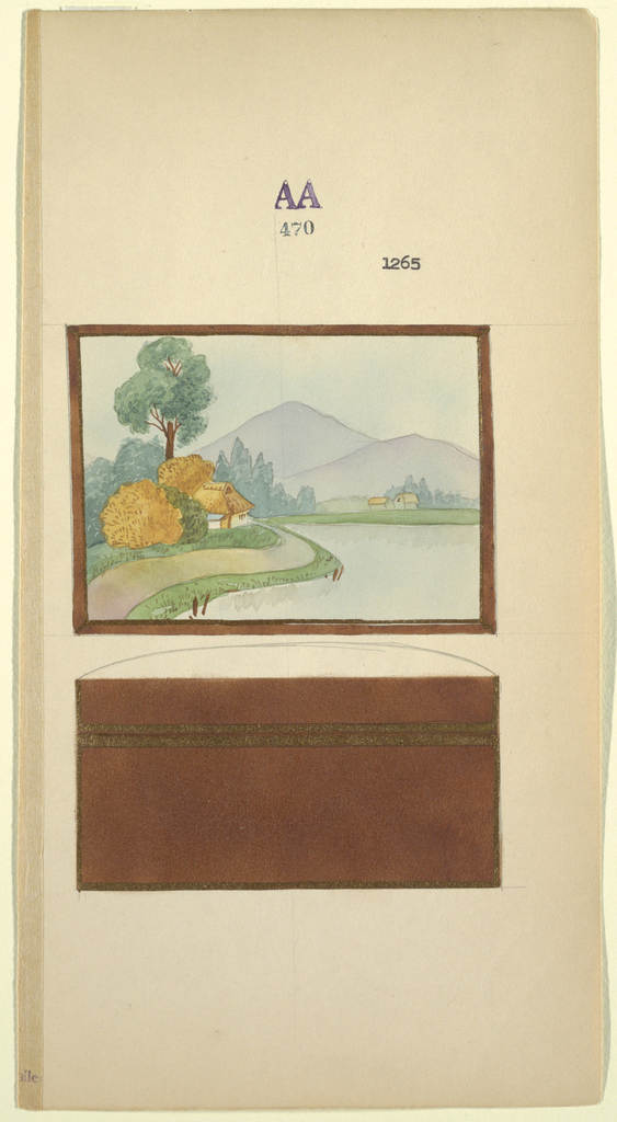 Drawing, Design for a Box; Made for Noritake; Japan; brush and watercolor, gold gouache, graphite on cream paper; 29.2 x 15.5 cm (11 1/2 x 6 1/8 in.) Mat: 35.7 x 45.8 cm (14 1/16 x 18 1/16 in.); 1985-14-32