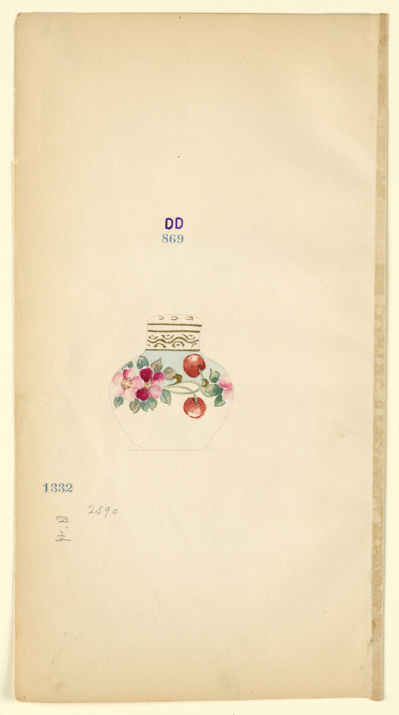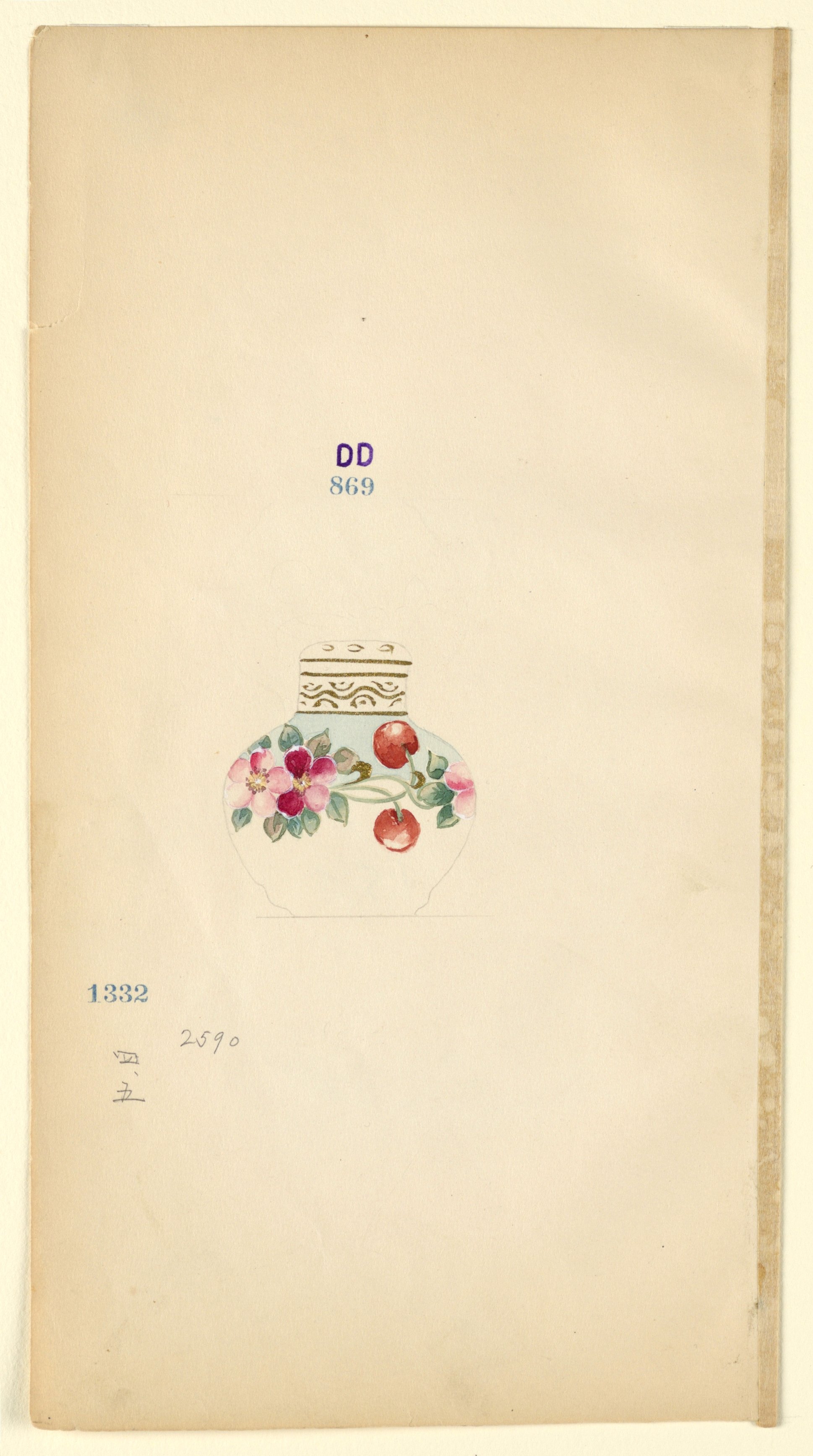 This is a Drawing. It was made for Noritake. It is dated 1880–1910 and we acquired it in 1985. Its medium is brush and watercolor, gold gouache, graphite on cream paper. It is a part of the Drawings, Prints, and Graphic Design department.