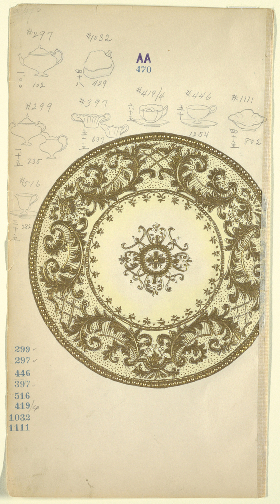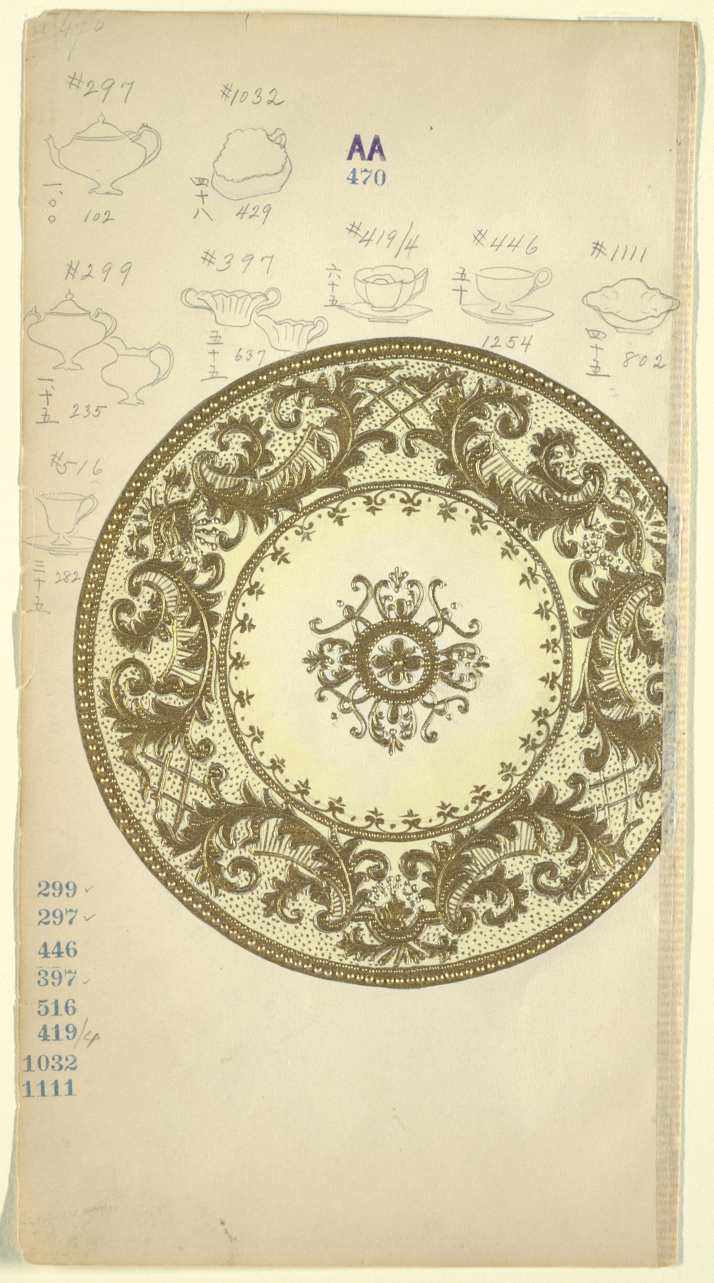 This is a Drawing. It was made for Noritake. It is dated 1880–1910 and we acquired it in 1985. Its medium is brush and gold gouache, graphite on cream paper. It is a part of the Drawings, Prints, and Graphic Design department.