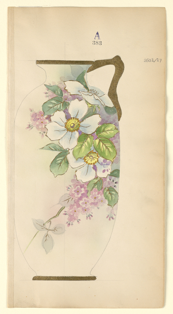 Drawing, Design for a Ewer; Made for Noritake; Japan; brush and watercolor, gold gouache, graphite on cream paper; 29.2 x 15.4 cm (11 1/2 x 6 1/16 in.) Mat: 35.7 x 45.7 cm (14 1/16 x 18 in.); 1985-14-42