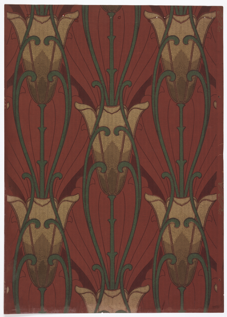 This is a Sidewall - sample. It was made by Liberty Paper & Bag Co.. It is dated 1906–07 and we acquired it in 1985. Its medium is machine-printed. It is a part of the Wallcoverings department.