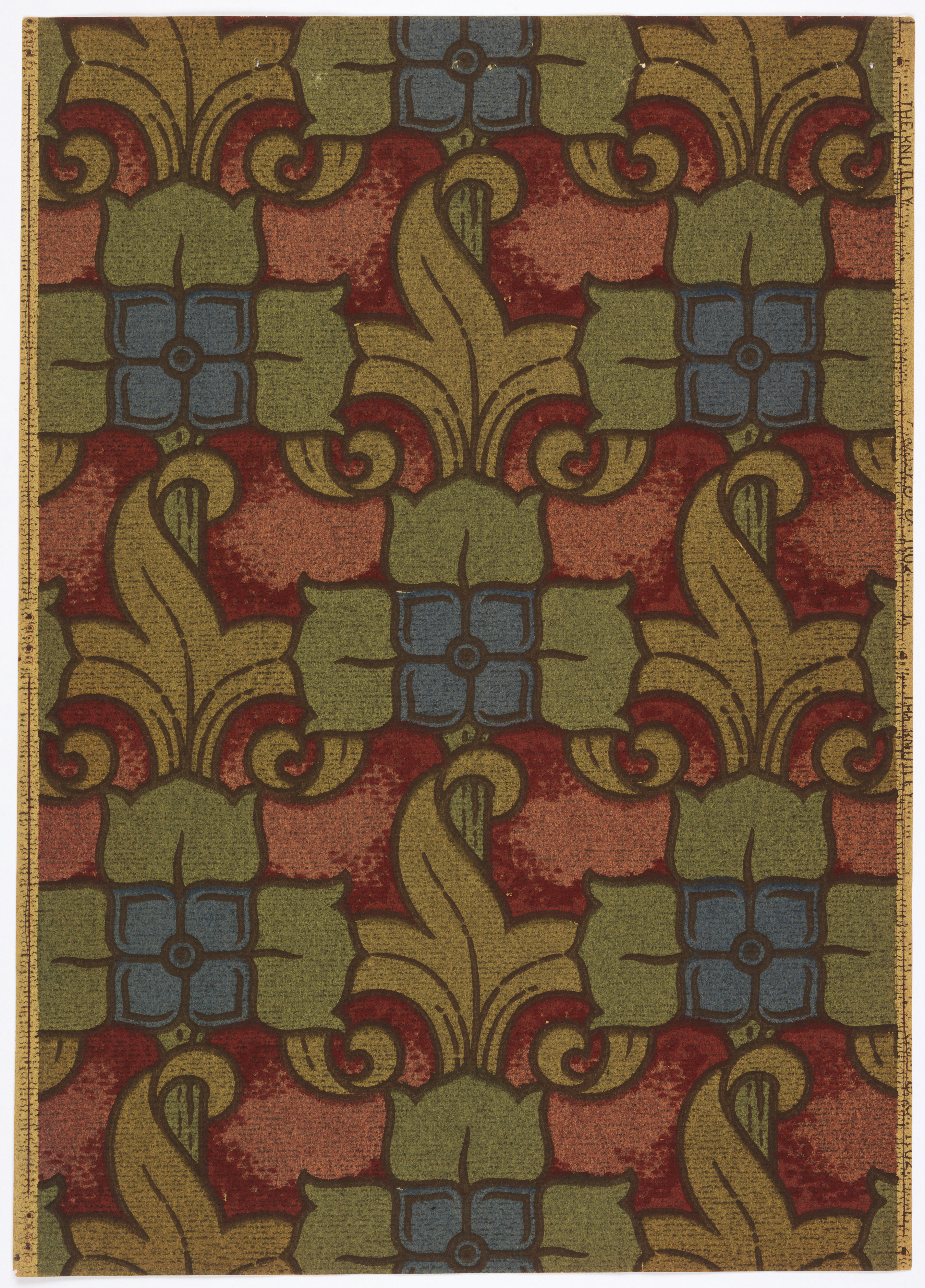 This is a Sidewall - sample. It is dated 1906–07 and we acquired it in 1985. Its medium is machine-printed. It is a part of the Wallcoverings department.