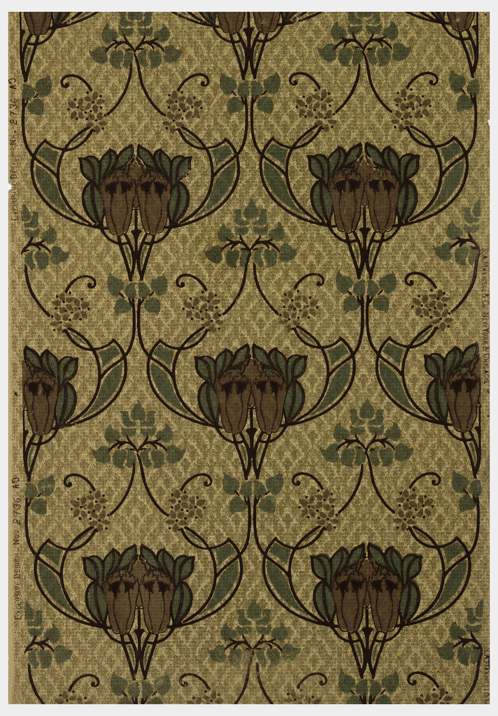 This is a Sidewall - sample. It was distributed by S.A. Maxwell & Co.. It is dated 1907–08 and we acquired it in 1985. Its medium is machine-printed. It is a part of the Wallcoverings department.