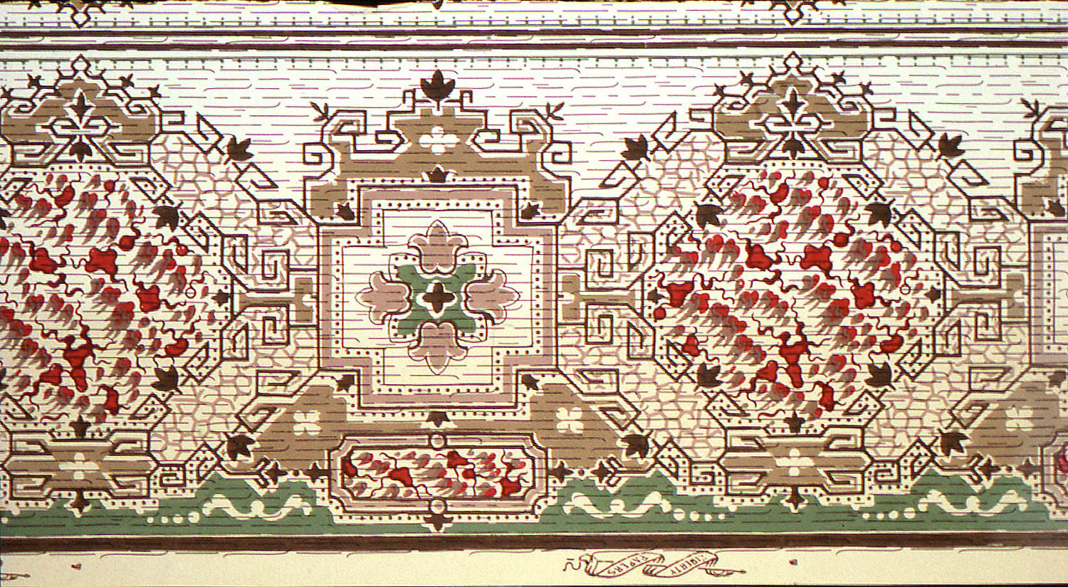 This is a Border - sample. It was manufactured by Liberty Paper & Bag Co.. It is dated 1906–08 and we acquired it in 1985. Its medium is machine-printed paper. It is a part of the Wallcoverings department.