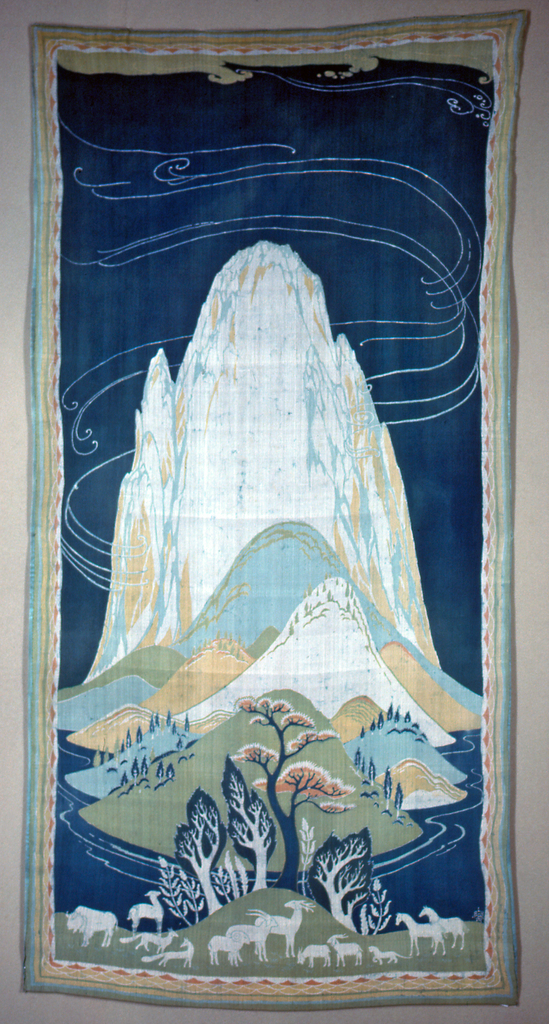 This is a Hanging. It was designed by Lydia Bush-Brown and made by Lydia Bush-Brown. It is dated late 1920s–early 1930s and we acquired it in 1985. Its medium is silk and its technique is wax resist (batik) on plain weave with overtwisted yarns. It is a part of the Textiles department.