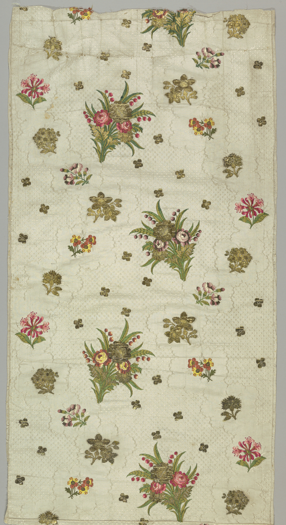Textile (England); silk and metallic thread; Repeat H: 45 cm (17 11/16 in.) Warp x Weft: 97.8 x 51.4 cm (38 1/2 x 20 1/4 in.); Gift of Mrs. John Hay Whitney; 1985-38-2-a,b