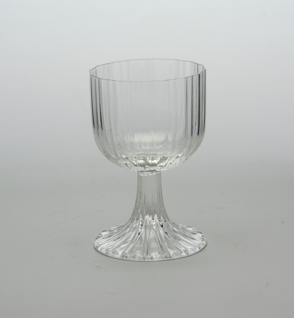 This is a glass. It was designed by Lella Vignelli and Massimo Vignelli and design team member: David Law and manufactured by Venini Glassworks. We acquired it in 1985. Its medium is glass. It is a part of the Product Design and Decorative Arts department.
