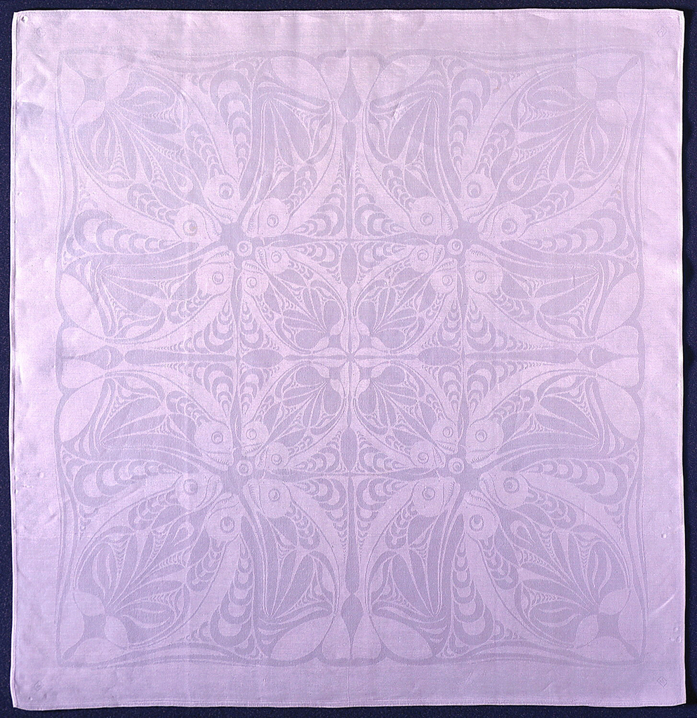 This is a Napkin. It was designed by Chris Lebeau and manufactured by E.F.J. Van Dissel and Son. It is dated ca. 1905 and we acquired it in 1985. Its technique is 7\1 satin damask. It is a part of the Textiles department.