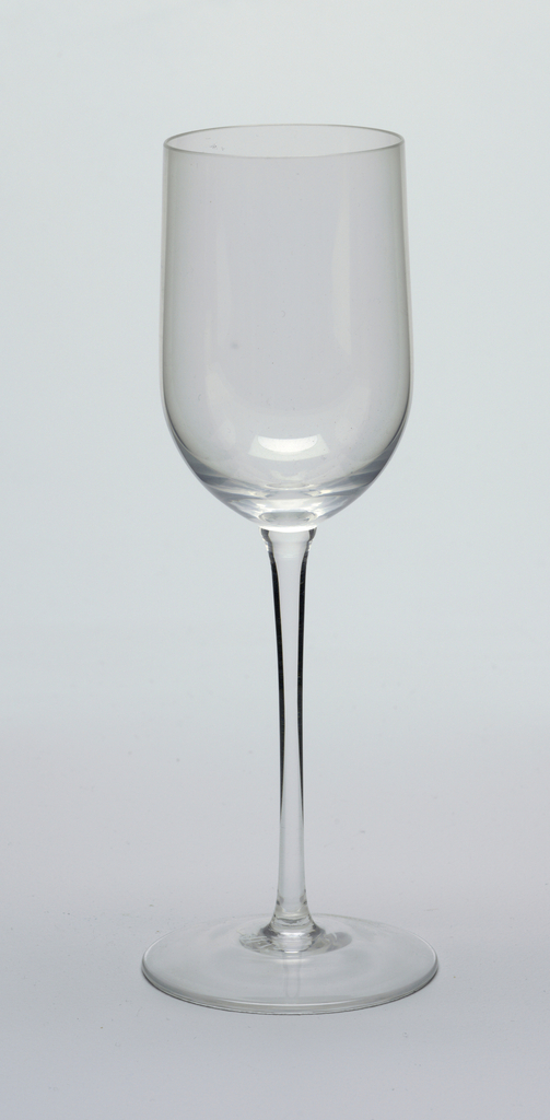 This is a glass. It was designed by Claus Josef Riedel and made by Riedel Crystal. It is dated ca. 1985 and we acquired it in 1985. Its medium is glass. It is a part of the Product Design and Decorative Arts department.