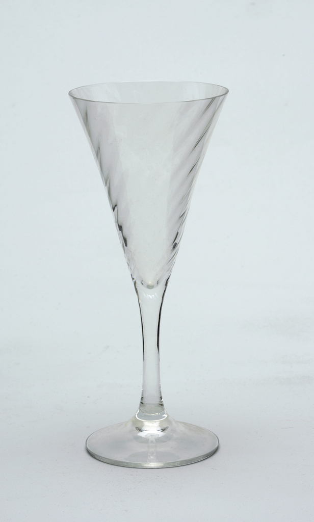 This is a claret glass. It was manufactured by Orrefors Glassworks. It is dated ca. 1980 and we acquired it in 1985. Its medium is glass. It is a part of the Product Design and Decorative Arts department.