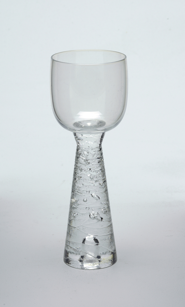 This is a White wine glass. It was designed by Timo Sarpaneva. We acquired it in 1985. Its medium is glass. It is a part of the Product Design and Decorative Arts department.