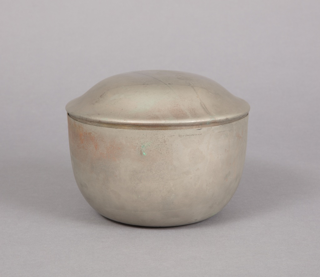 Prototype for a Saucepan and Lid Pan Prototype; Designed by Eva Zeisel (American, b. Hungary, 1906–2011); Manufactured by Chantal Cookware Corp.; metal; H x W x D (a): 11.8 × 20 × 17.5 cm (4 5/8 × 7 7/8 × 6 7/8 in.) H x W x D (b): 4 × 20 × 18 cm (1 9/16 × 7 7/8 × 7 1/16 in.); Museum purchase from General Acquisitions Endowment Fund; 2019-32-10-a,b