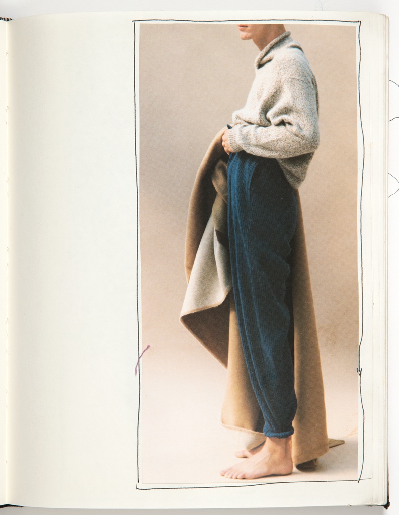 This is a Sketchbook. It was designed by Willi Smith. It is dated 1985 and we acquired it in 2021. Its medium is pen and ink, collage, fabric swatches on paper. It is a part of the Drawings, Prints, and Graphic Design department.