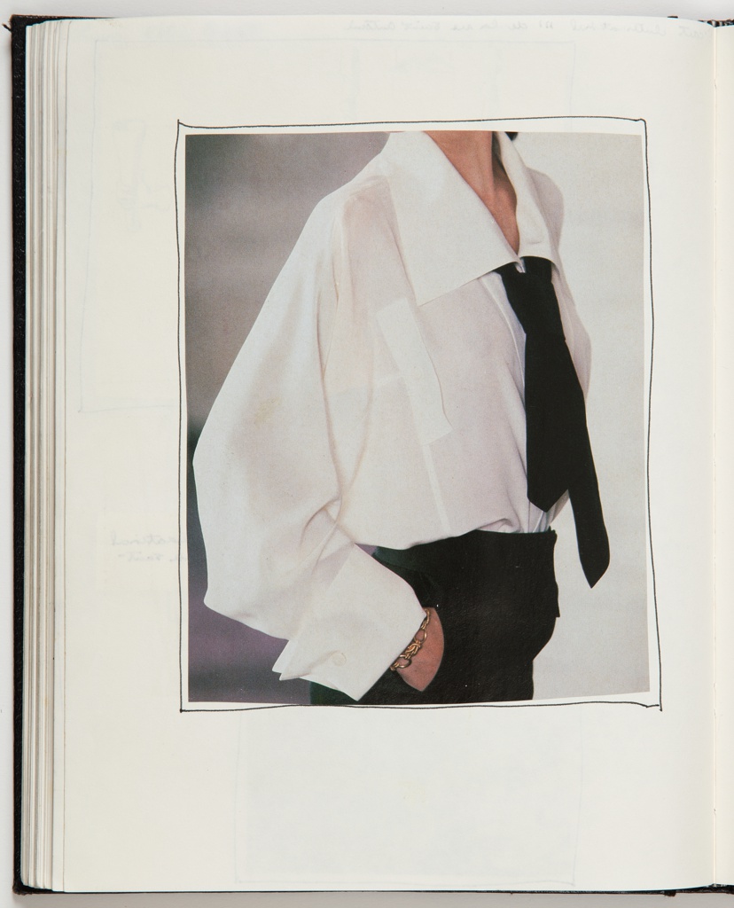 Smith’s sketchbook is opened to a spread of costume design drawings for The Original Cotton Club-Gala presented by La MaMa Experimental Theater and WilliWear Ltd. in 1985. Smith’s designs for the costumes were inspired by his travels in Senegal and the costumes Black American entertainers wore when performing at the original Cotton Club in Harlem from 1923–1940.
