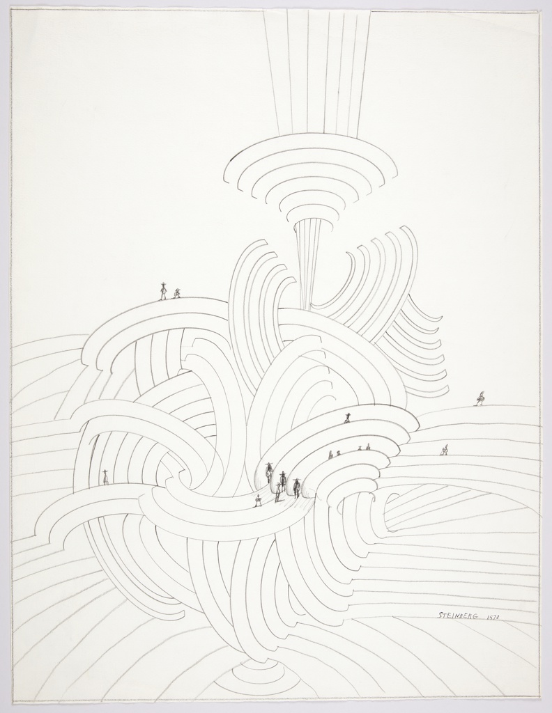 This is a Drawing. It was created by Saul Steinberg. It is dated 1978 and we acquired it in 2020. Its medium is graphite and color pencil on paper. It is a part of the Drawings, Prints, and Graphic Design department.