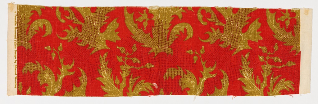 This is a Textile. It was designed by Edward J. Wormley and manufactured by Franklin Harward Fabrics Inc.. It is dated 1950s and we acquired it in 2019. Its medium is linen. It is a part of the Textiles department.