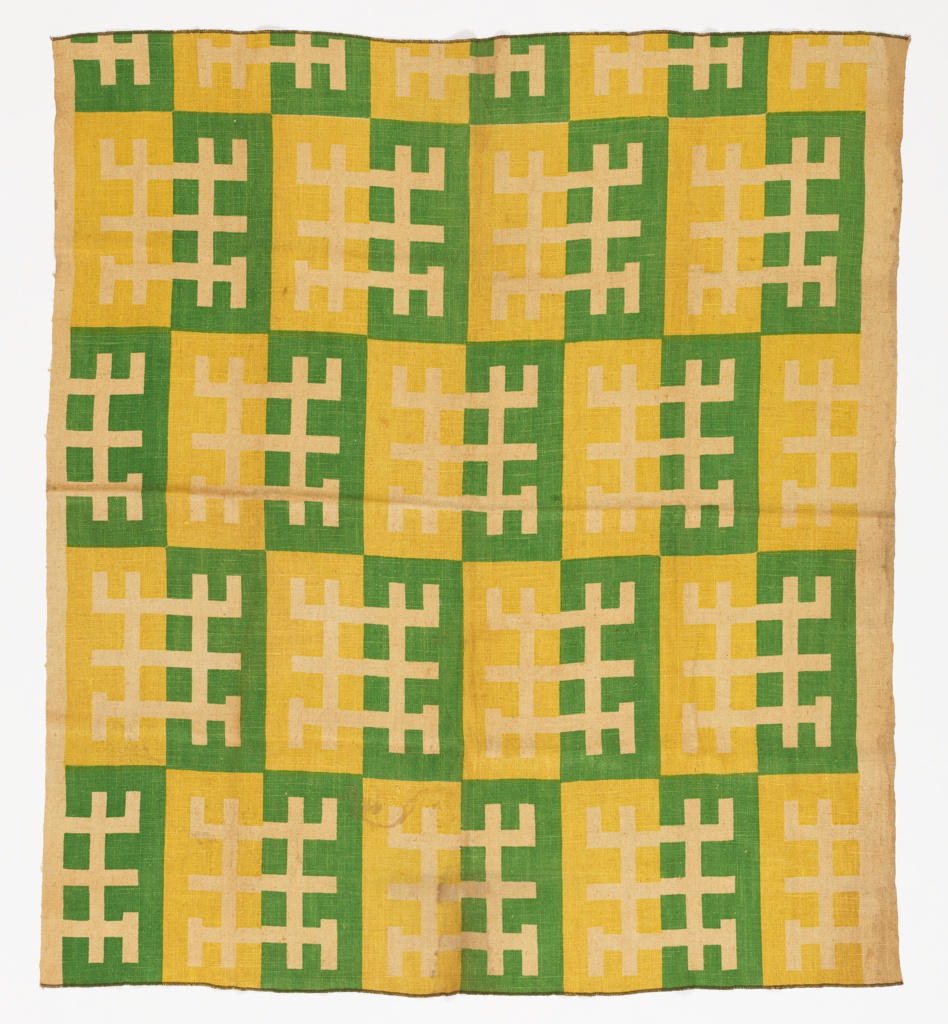 This is a Textile. It was designed by Ruth Reeves and manufactured by Morley Fletcher Ltd., New York, NY. It is dated designed ca. 1931, reprinted 1949 and we acquired it in 2019. Its medium is linen. It is a part of the Textiles department.