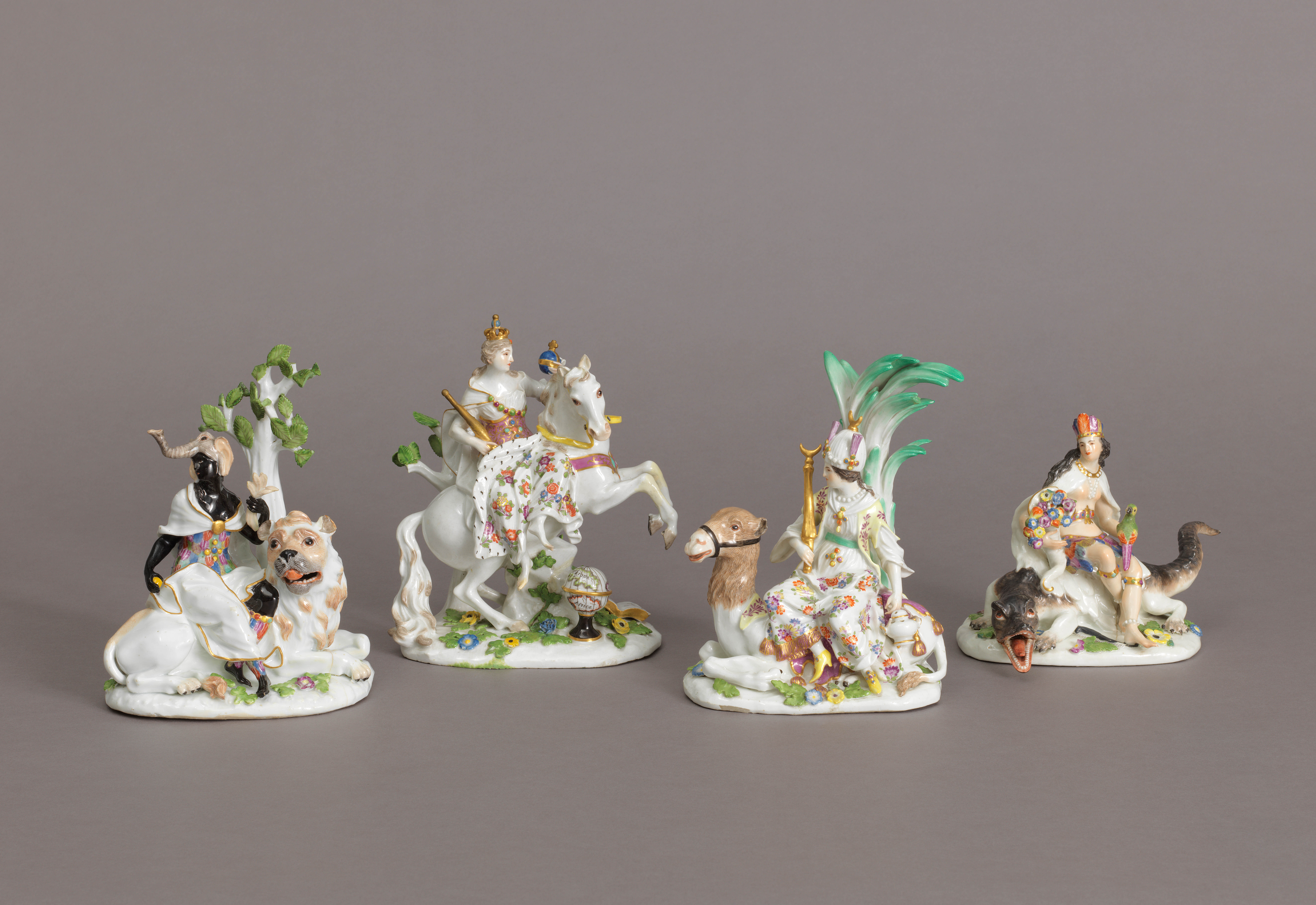 This is a figures. It was possibly by Gottfried Bernhard Götz and after Peter Reinicke and Johann Friedrich Eberlein and modeled by Peter Reinicke and Johann Joachim Kändler and manufactured by Meissen Porcelain Manufactory. It is dated 18th century and we acquired it in 1960. Its medium is hard paste porcelain, vitreous enamel, gold. It is a part of the Product Design and Decorative Arts department.