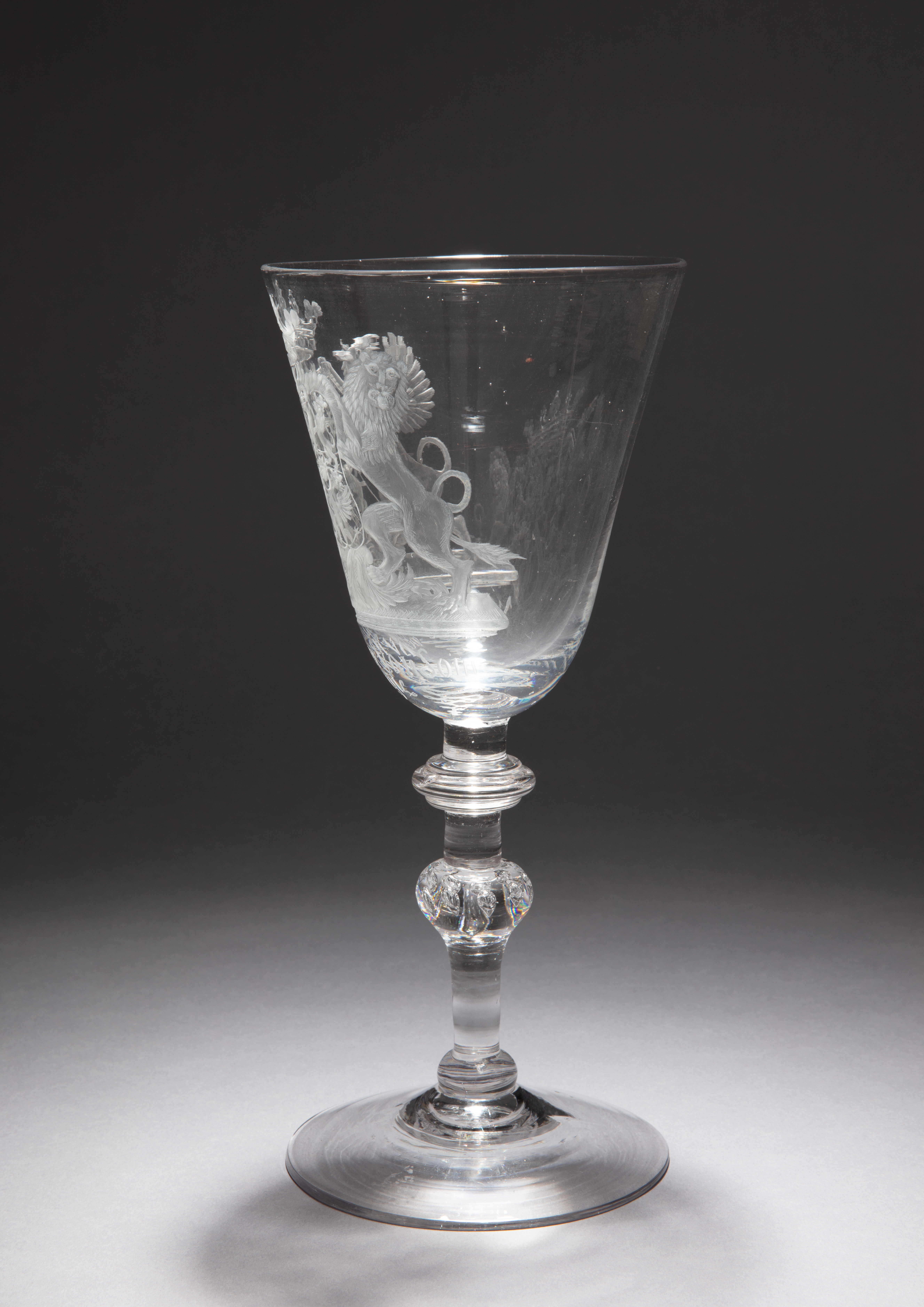 Goblet Commemorating François Cornelis van Aerssen van Sommelsdijk (1725–93) and his wife Everdina Petronella (1730–94), countess of Hogendorp Drinking Glass; lead glass; H x diam.: 26.2 × 12 cm (10 5/16 × 4 3/4 in.); Gift of Beatrice Taplin; 2021-9-3