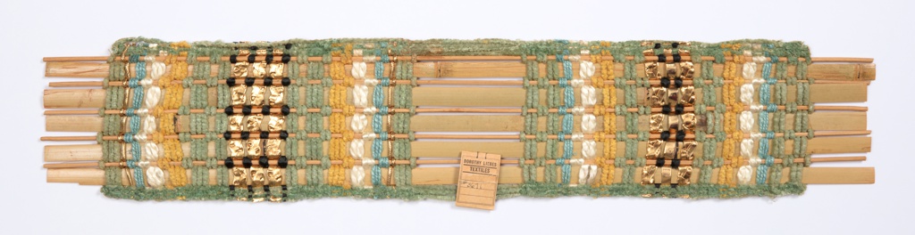 Sample; Designed by Dorothy Wright Liebes (American, 1897–1972); cellulose triacetate, cotton, viscose rayon, silk, cellulose acetate butyrate-laminated aluminum yarn, bamboo; H x W: 12.7 × 61 cm (5 × 24 in.); Gift of Titi Halle; 2021-15-27