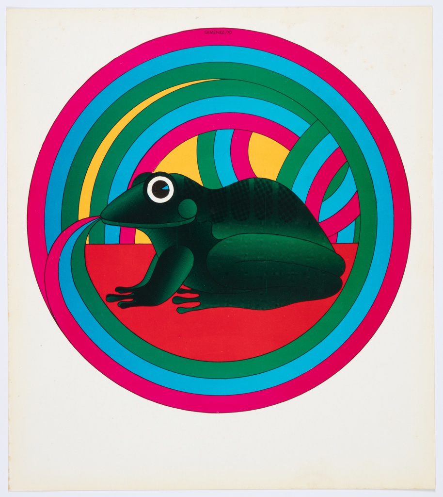 Poster, Untitled (Frog); Edgardo Giménez (Argentinian, born 1942); Client: Fuera de Caja; offset lithograph on paper; L x W: 26 × 23 cm (10 1/4 × 9 1/16 in.); Gift of the Institute for Studies on Latin American Art (ISLAA); 2021-29-14