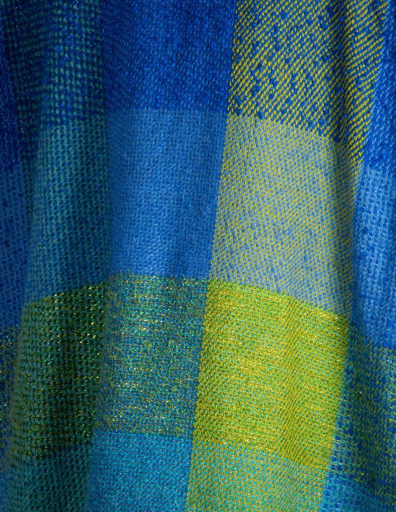 With its two large pockets, this poncho is typical of Cashin’s designs for women: elegant, wearable, and practical. Liebes has incorporated thin strands of Lurex in some, but not all, of the handwoven fabric, creating a variable play of light enhanced by the wearer’s movement.