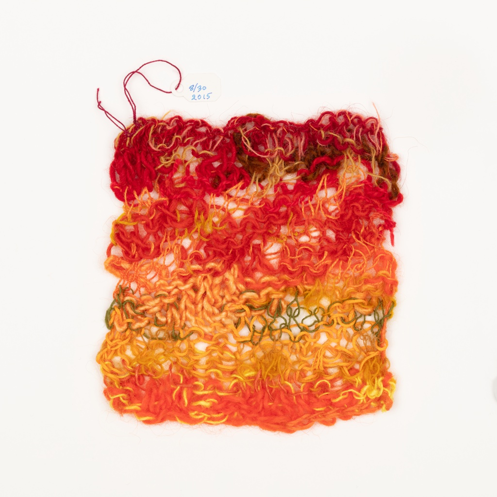 This is a Patch. It was created by Helena Hernmarck. It is dated August 30, 2015 and we acquired it in 2024. Its medium is knitted wool. It is a part of the Textiles department.
