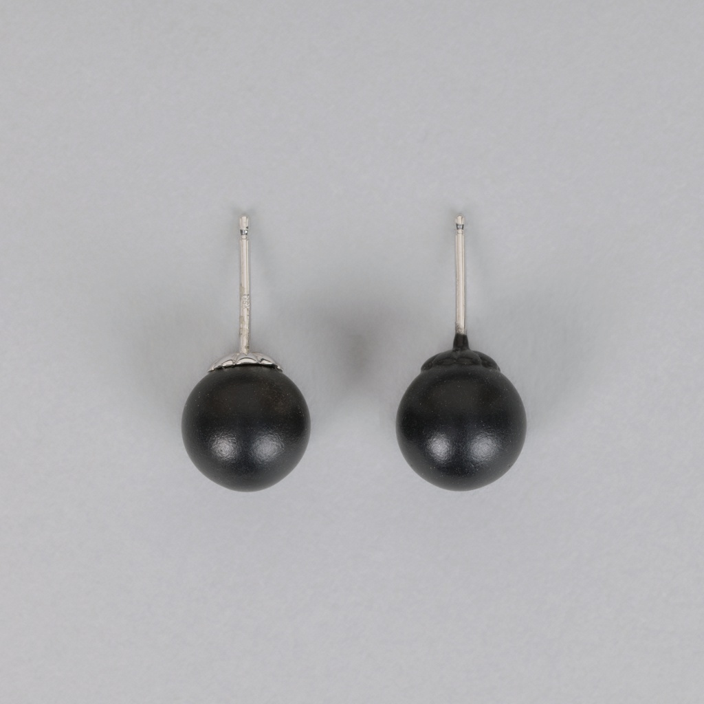 Pearls Earrings Pair Of Earrings; Designed by Tobias Wong (1974–2010); Collaborator: Philip Moore; rubber, pearl, metal; H x diam.: 1 × 1 cm (3/8 × 3/8 in.); The Tobias Wong Collection, Gift of Phyllis Chan and Gordon Wong; 2024-4-41-a/d