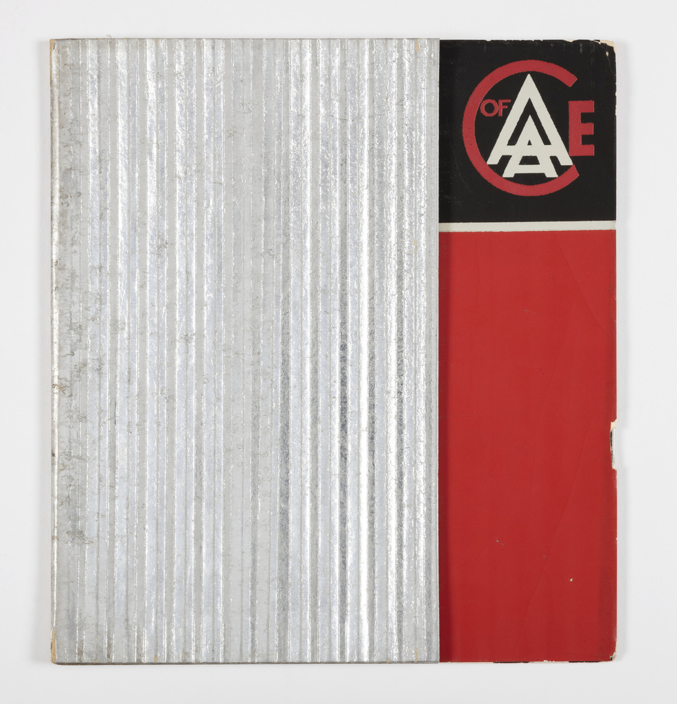 The American Automobile Club of Europe was founded in 1925 by a group of fifteen American automobile executives who were based throughout Europe. The executives were focused on promoting the emerging markets for American-made automobiles, and felt that a professional organization would help support them. Headquartered in Paris, the group’s mission is outlined in this publication, which was designed by French graphic designer Jean Carlu: “To bring together the men in Europe who represent American manufacturers in all branches of the automotive industry. To act as a clearing house for information of mutual interest to its members, and to study questions which affect their operations. To entertain visitors to Europe who are connected with the automotive industry in America.” Carlu’s publication design features a striking logo, layering the acronym lettering of the club in an Art Deco style. The cover is constructed of a silver-coated ridged cardboard, a visual nod to the corrugated metal that was popular in industrial production.