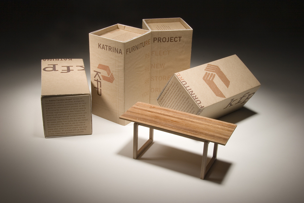 YouOrleans is an identity system developed by students, alumni, and instructors from Art Center College of Design, formed to brand the Katrina Furniture Project. The identity graphically represents the resilient and ever-optimistic citizens of New Orleans, as well as the craftspeople at the Katrina Furniture Project who are using their talent to affect recovery and reclaim their lives. The project based its design solution on the typographic identifier of “Re”―as in Recovery, Revitalization, Reformation, Reuse, Redevelop, and Redeem―embodied in the furniture.