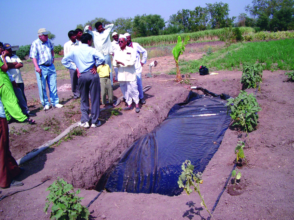 The low-cost, non-evaporative Water Storage System captures and stores monsoon rainwater, making water available during India’s long dry season. For many small farmers, there is either too much water during the rainy season or a water shortage during the dry season, when there is no water available for irrigation and drinking-water wells run dry. By providing a 10,000-liter plastic storage bag and enclosing it in a hand-dug pit, this system is one-fifth the cost of existing ferro-cement tanks.