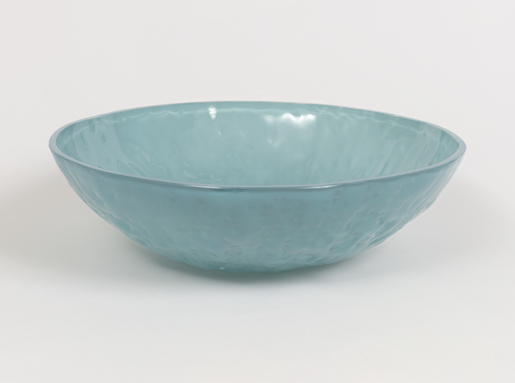 The simple shape of the Pablo and Pedro bowls belies the subtle texture and tactile quality of these beautiful mold-blown objects. The molds are created from volcanic stone native to Mexico, a material that saves energy during the manufacturing process. The green-blue color adds a feeling of lightness and translucency to the bowls, with the partial-gloss finish providing a degree of reflectivity. By seeking out sustainable materials and developing processes that rely on skilled labor and local materials, Godoy creates rich objects informed by solid values.
