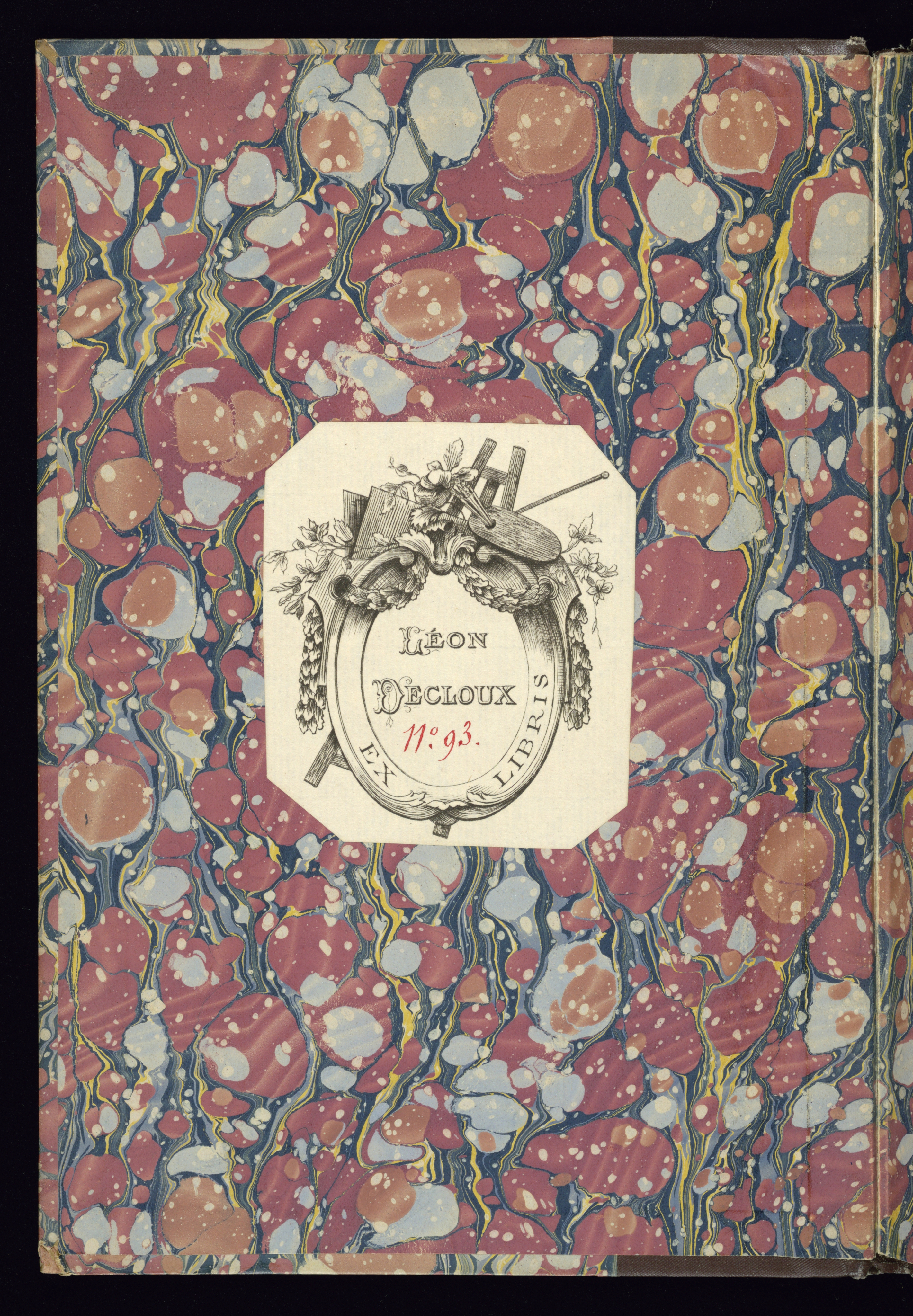 Léon Decloux ex-libris pasted onto center of upper cover pastedown.